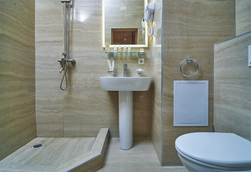 Ванная комната оборудована современной сантехникой, приятным светом и дополнительной вентиляцией.