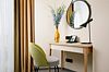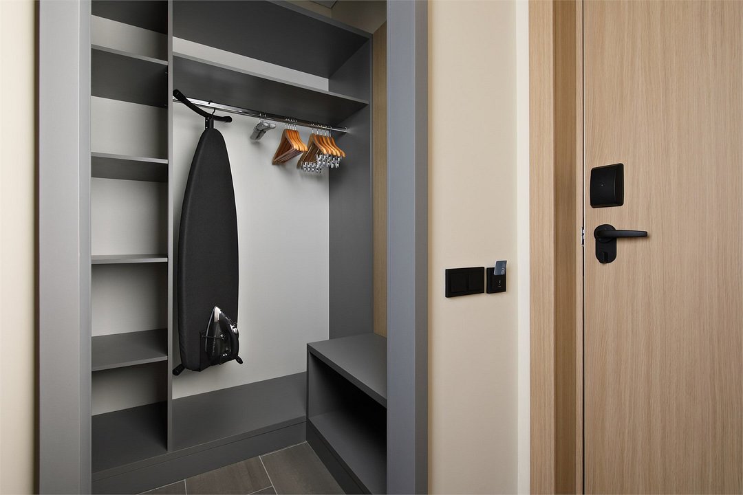 Максимальная вместимость номера: четыре человека. Размещение: большая двуспальная кровать King Size в спальне, раскладывающийся диван в гостиной позволяют с комфортом разместиться семье с детьми. Есть возможность установки детской кроватки.