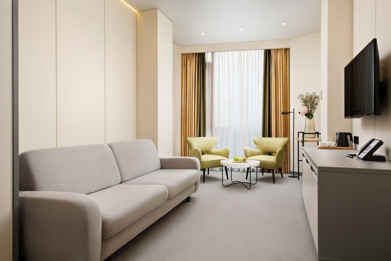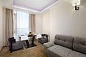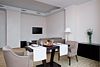 Максимальная вместимость номера: трое человек. Размещение: большая двуспальная кровать King Size в спальне, диван-канапе, журнальный столик и два мягких кресла позволяют с комфортом провести время и насладиться элегантным и современным дизайном. Предусмотрено дополнительное место для взрослого.