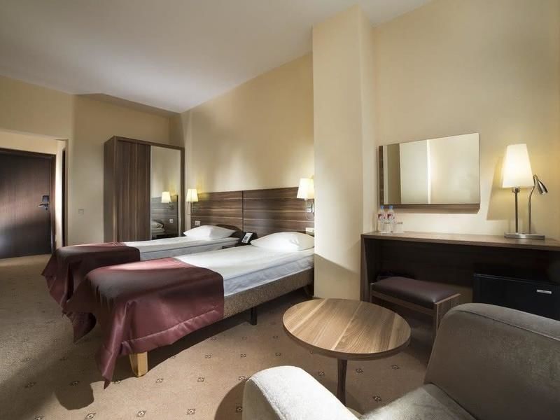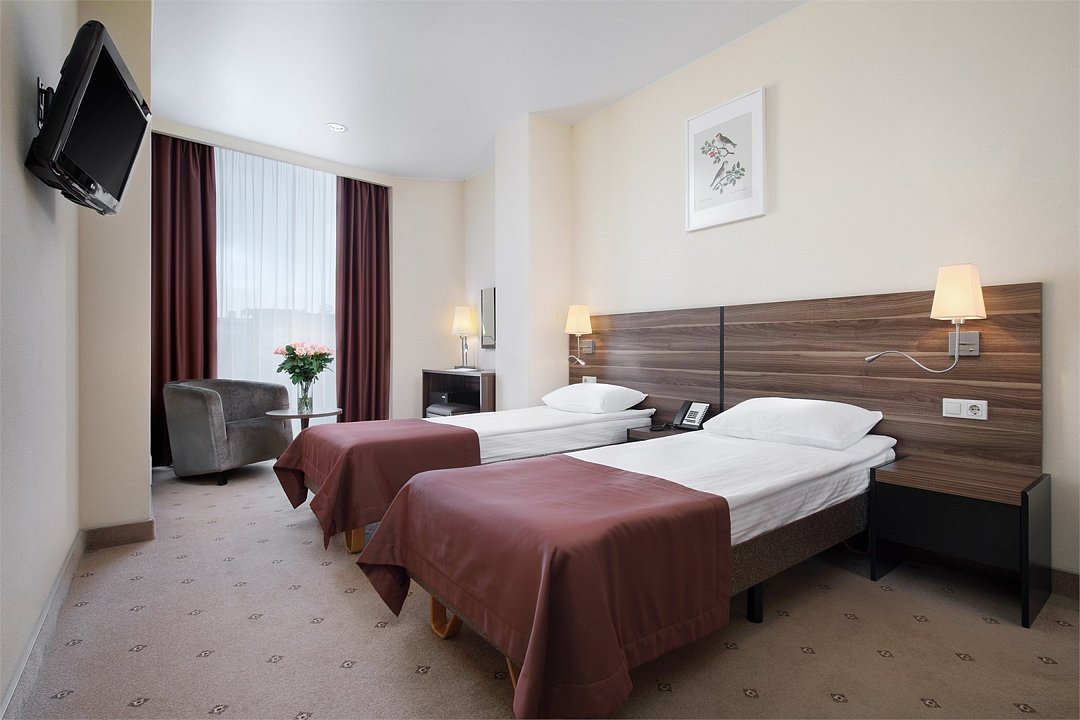 Особенности номера: однокомнатный номер, состоящий из просторной спальни и ванной комнаты, предназначен для одноместного или двухместного размещения. По желанию гостей возможен выбор номера с двуспальной кроватью либо двумя раздельными односпальными кроватями. Максимальная вместимость номера: три человека. Размещение: две односпальные или двуспальная кровать. Есть возможность установки детской кроватки.