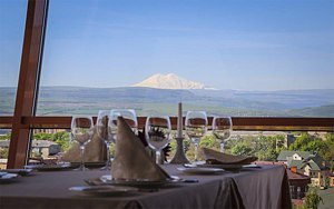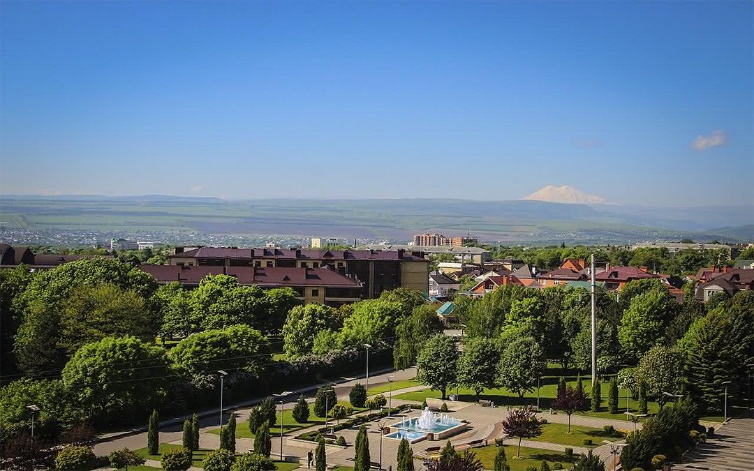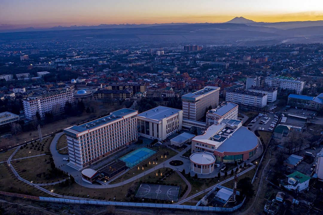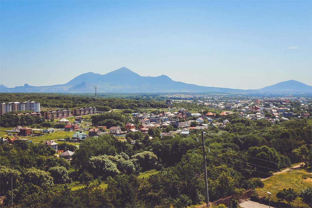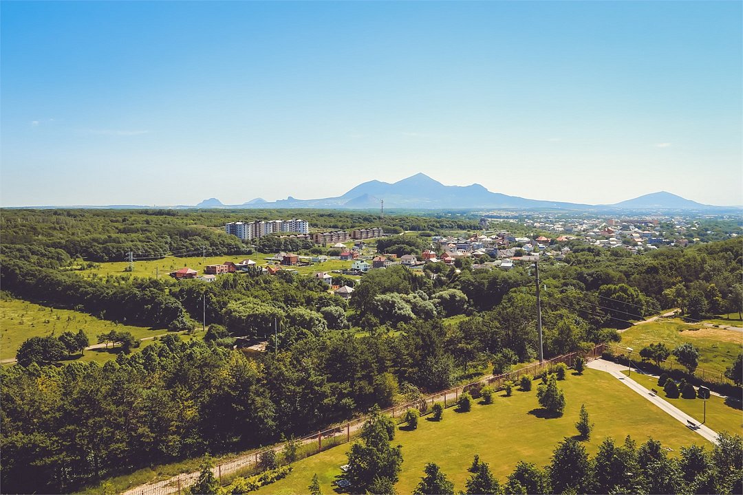 Вид из окон: юг — бесконечная цепь снежных горных вершин (Главный Кавказский хребет) и гордый Эльбрус. Север — завораживающие горы-лакколиты и живописные пейзажи предгорья Кавказских Минеральных Вод.