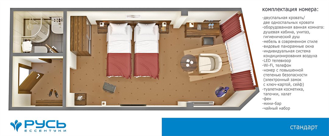 60 м2 · 2-х местный гостиничный номер + 1 доп. место