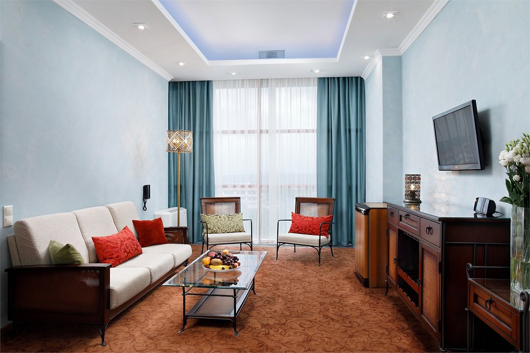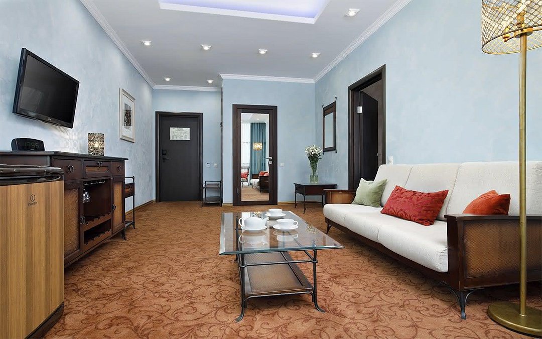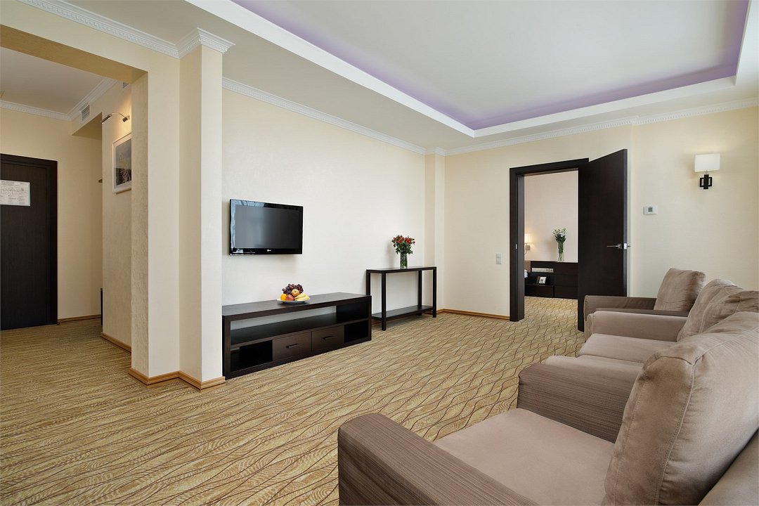 Особенности номера: двухкомнатный номер, состоящий из уютной гостиной и комфортабельной спальни. Номер оборудован двумя раздельными санузлами.