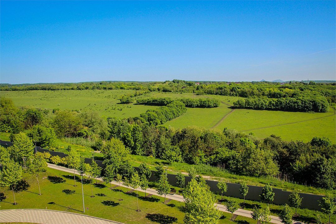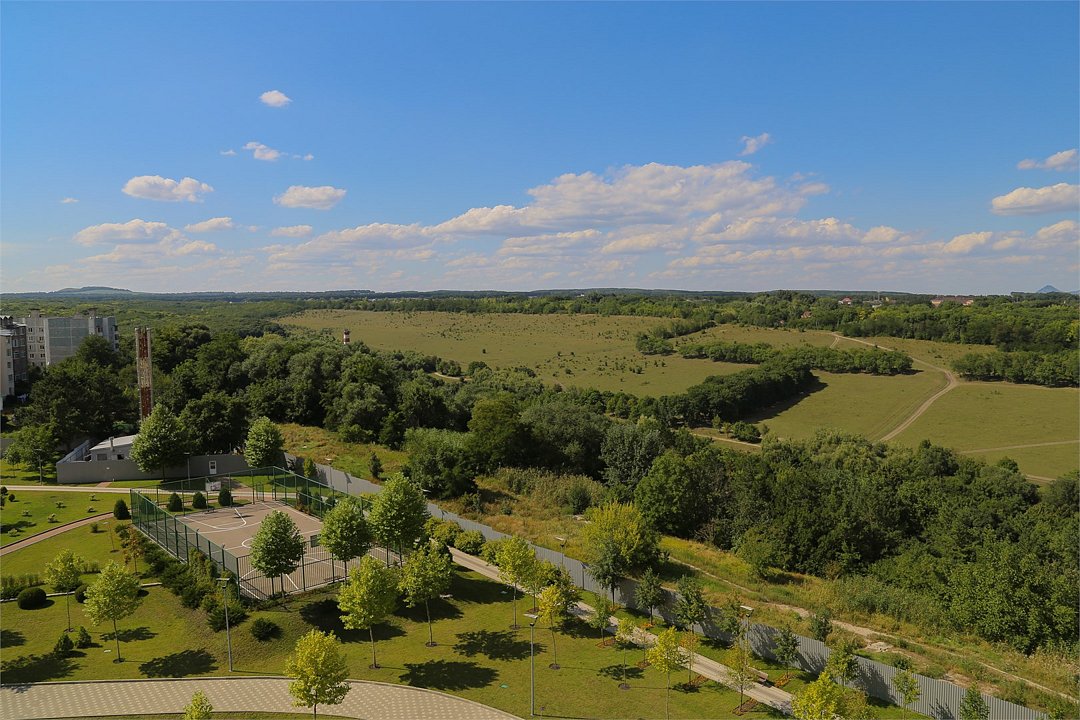 Вид из окон: северная сторона: словно парящие над горизонтом, неповторимые по красоте легендарные горы-лакколиты и живописные пейзажи предгорья Кавказских Минеральных Вод.