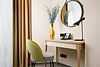 Максимальная вместимость номера: четыре человека. Размещение: просторная двуспальная кровать в спальне, диван в гостиной и кабинете. Есть возможность установить детскую кроватку.