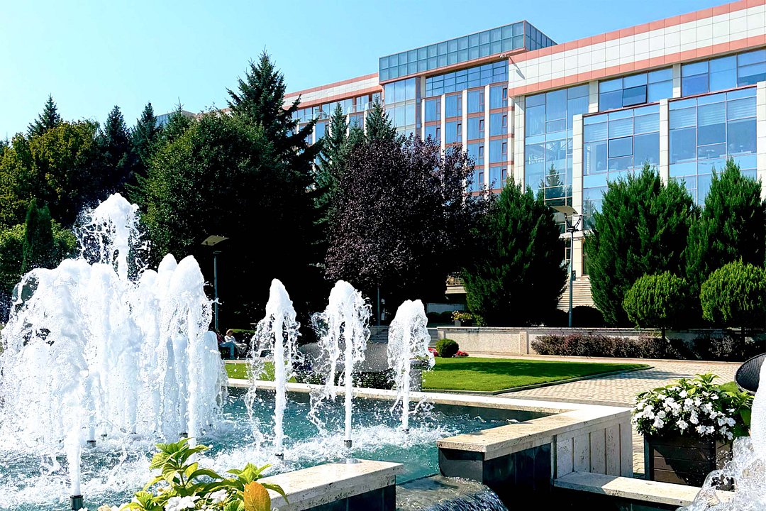 Вид из окон: южная сторона — панорама города Ессентуки, величественные горы Кавказских Минеральных Вод и Северного Кавказа; северная сторона — внутренняя территория комплекса и живописные пейзажи предгорья Кавказских Минеральных Вод.