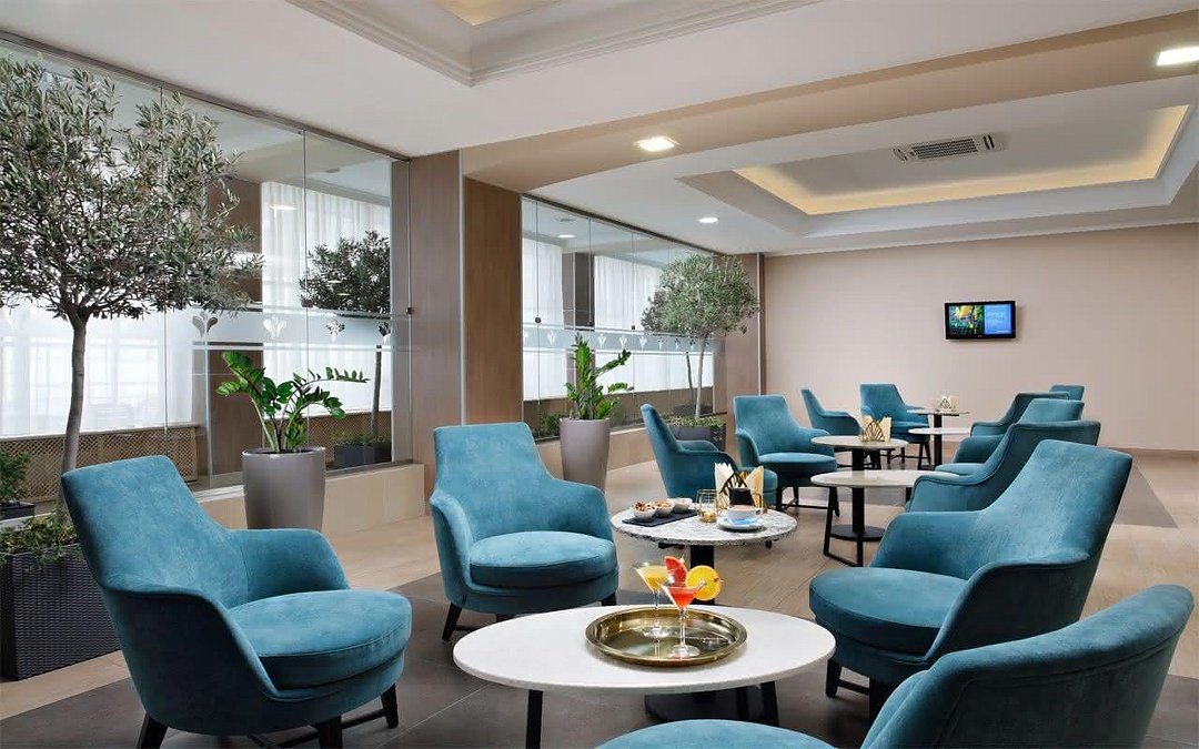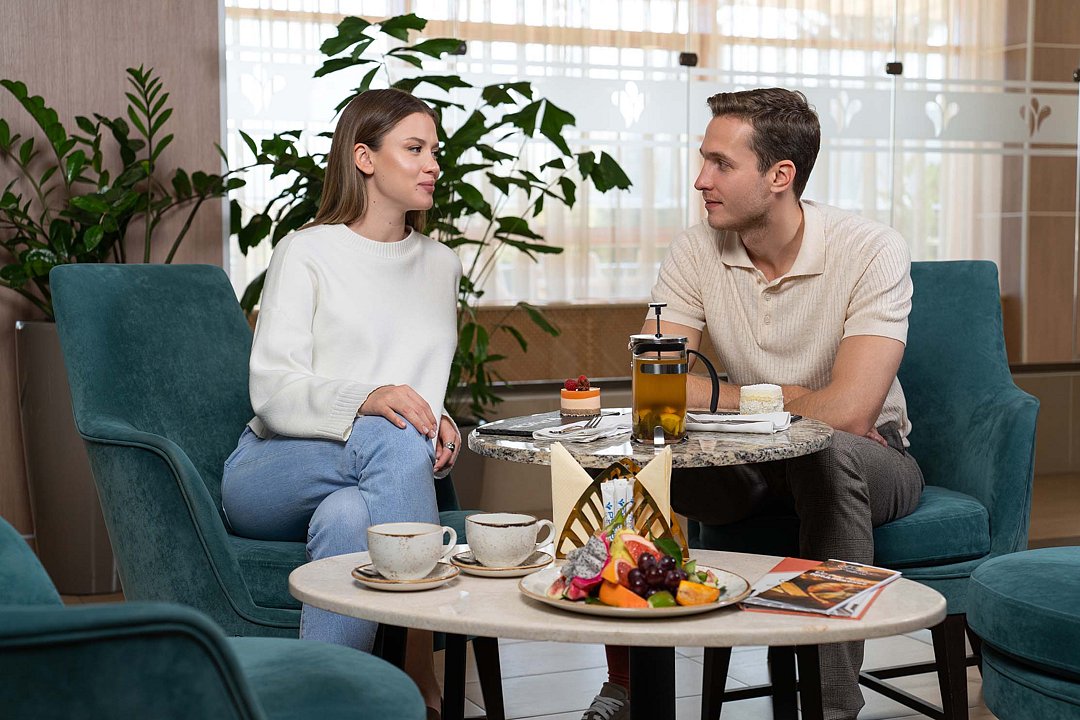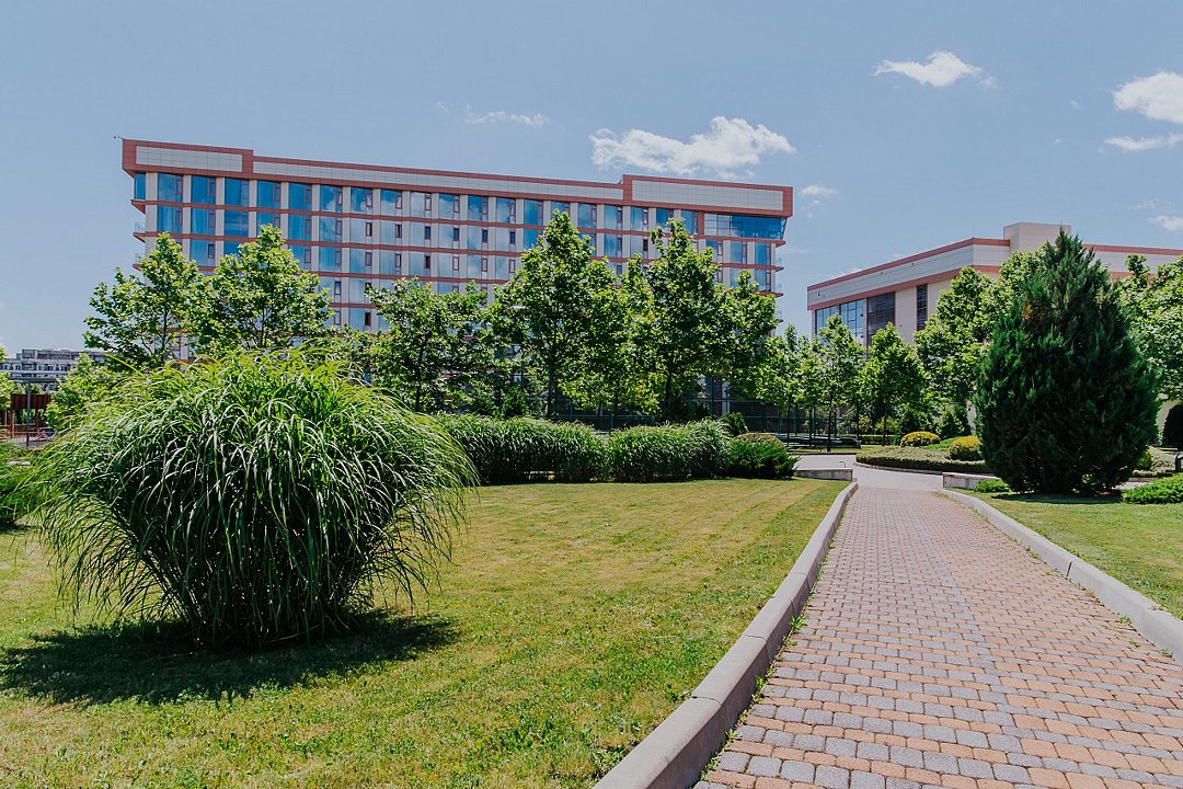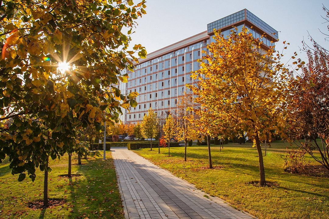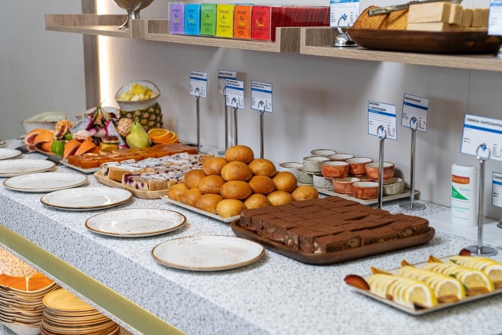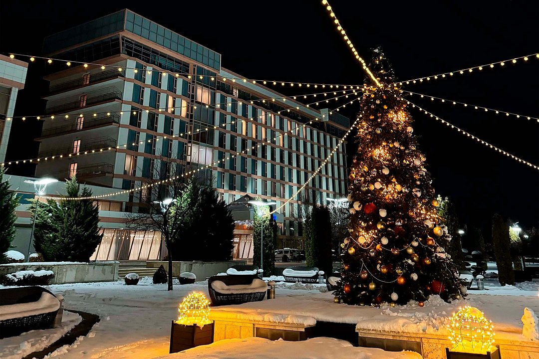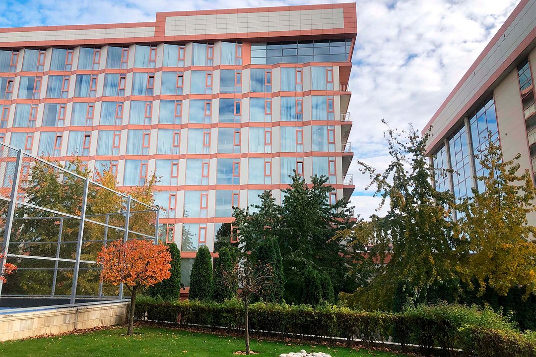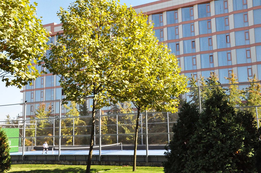 Вид из окон: номера оборудованы панорамными окнами, которые наполняют комнаты солнечным светом в дневное время и позволяют любоваться прекрасными видами на север — где расположены внутренняя территория комплекса и просторные степи.