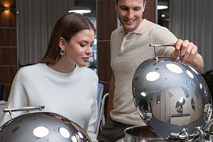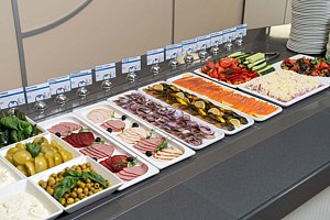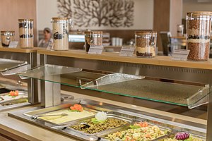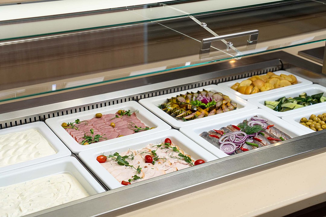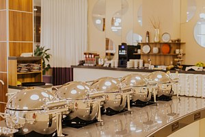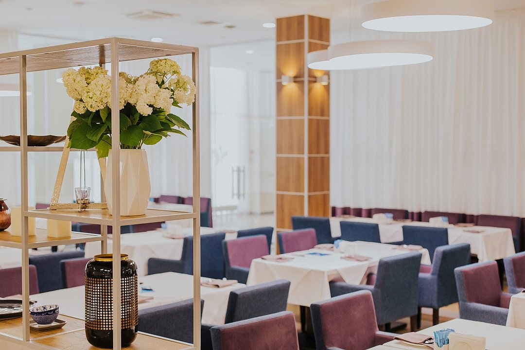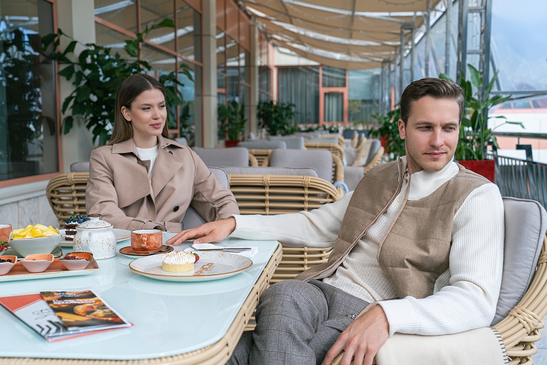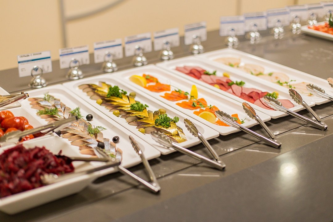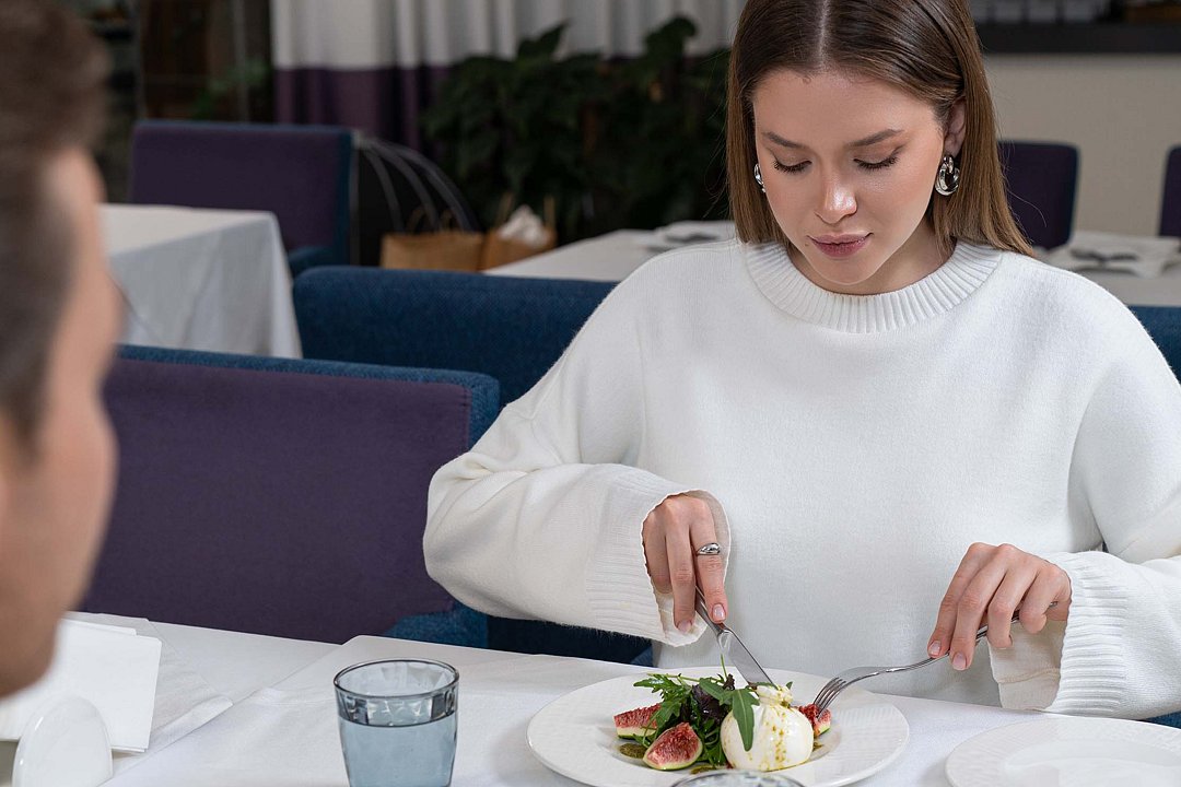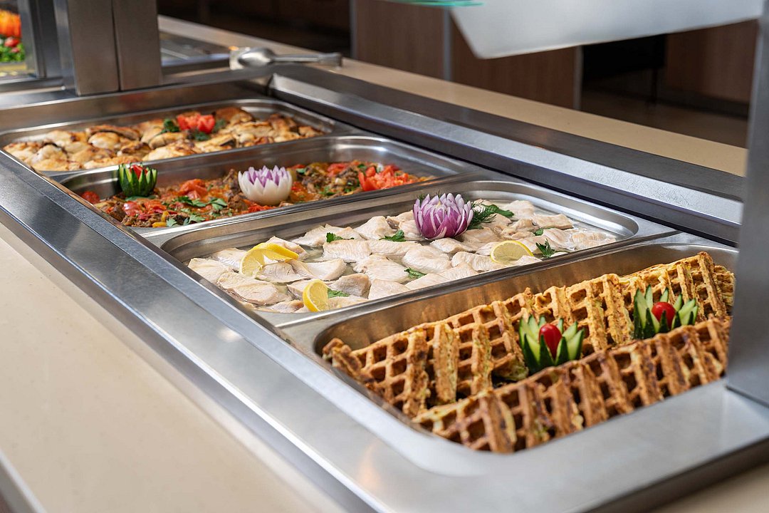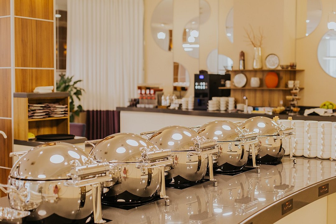 В санатории работают лобби-бар «Синатра», вип Зал «Сан-сити», вип Зал диетического питания «Диет-холл», обеденный зал «Скандинавия» и ресторан европейской кухни «Дольче Вита». Отдыхающие могут заказать себе комплексное питание, в том числе и диетическое, перекусить в течение дня, продегустировать коктейли и напитки, предусмотрено и детское меню с гипоаллергенным питанием.