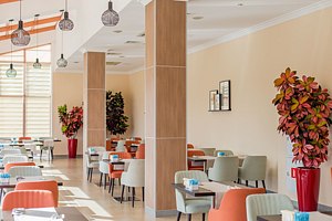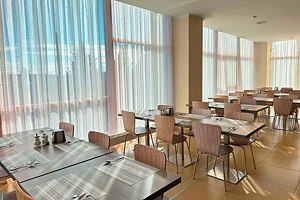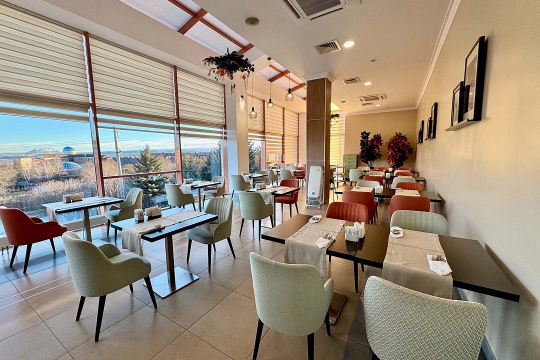 Вид из окон: номера оборудованы панорамными окнами, которые наполняют комнаты солнечным светом в дневное время и позволяют любоваться прекрасными видами на север, где расположены внутренняя территория комплекса и просторные степи.