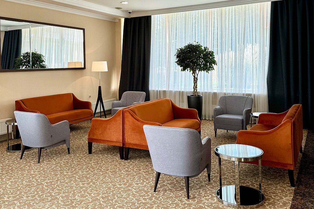 Особенности номера: просторный двухкомнатный номер с идеально продуманным дизайном «Делюкс» подойдет для тех, кто любит сдержанные тона и элегантность интерьера в сочетании с комфортом и функциональностью. Элегантный и современный дизайн, цветовые акценты, современные коммуникации - особое отличие данной категории номеров. Гости, проживающие в «Делюксе», питаются в VIP-зале «Диет-холл».