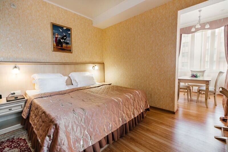 душевая кабина, биде, фен, косметическое зеркало, халаты, тапочки, набор полотенец, набор элитной косметики «Аква», холодильник, электрочайник, набор посуды для минибара, сейф, телевизор, кондиционер