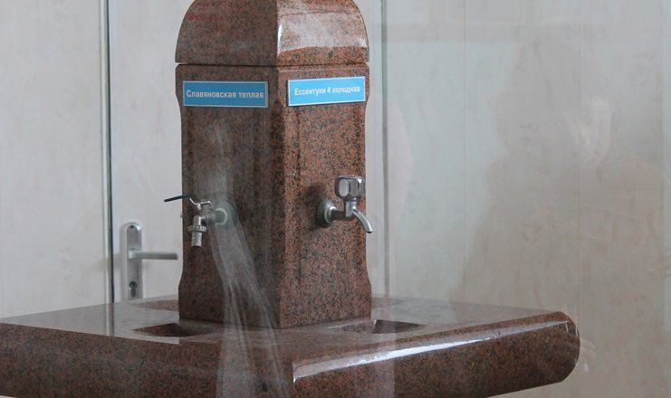 Территория санатория великолепно обустроена и озеленена, здесь имеются различные игровые и спортивные площадки для занятий спортом, здесь же располагаются бюветы минеральных вод «Ессентуки-4» и «Славяновская».