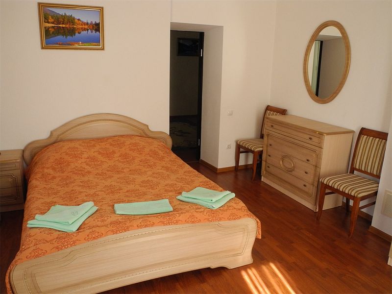 Улучшенный двухместный одно или двухкомнатный номер со всеми удобствами и террасой. Площадь однокомнатного номера 21 кв.м., Двухкомнатного - 38 кв.м. На террасе установлена мебель из ротанга.