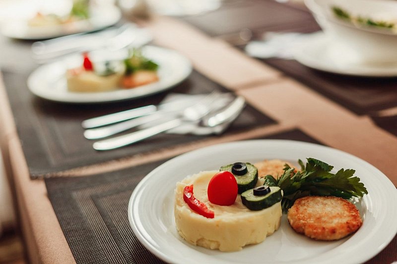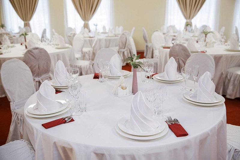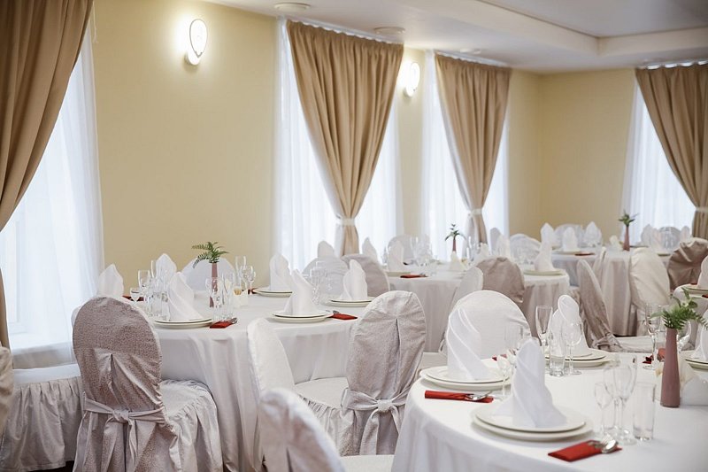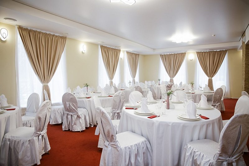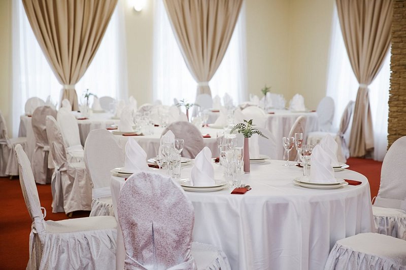 Просторный банкетный зал подойдёт как для проведения мероприятий, так и для свадебного торжества!