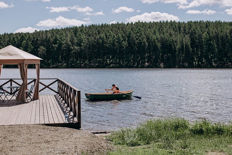 Погрузитесь в атмосферу спокойствия и умиротворения на берегу живописной реки Реж, в окружении леса.