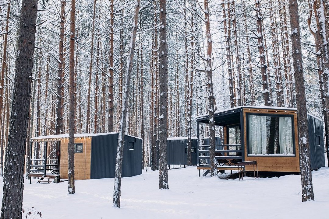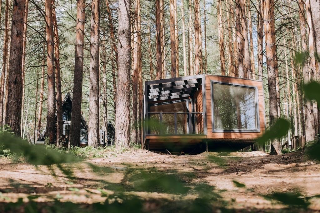 Комфортные Домики-контейнеры с панорамным видом, на берегу реки, внутри леса.