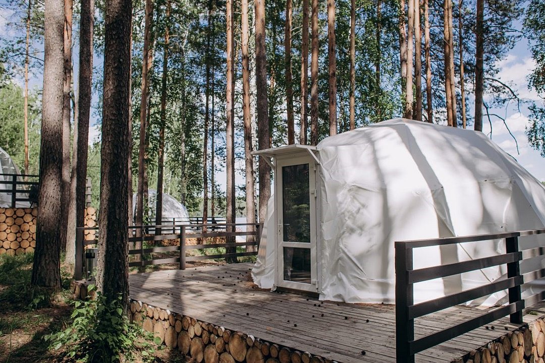 Современные геокупола — уникальное место для вашего отдыха. Расположены на берегу живописной реки, среди сосен.