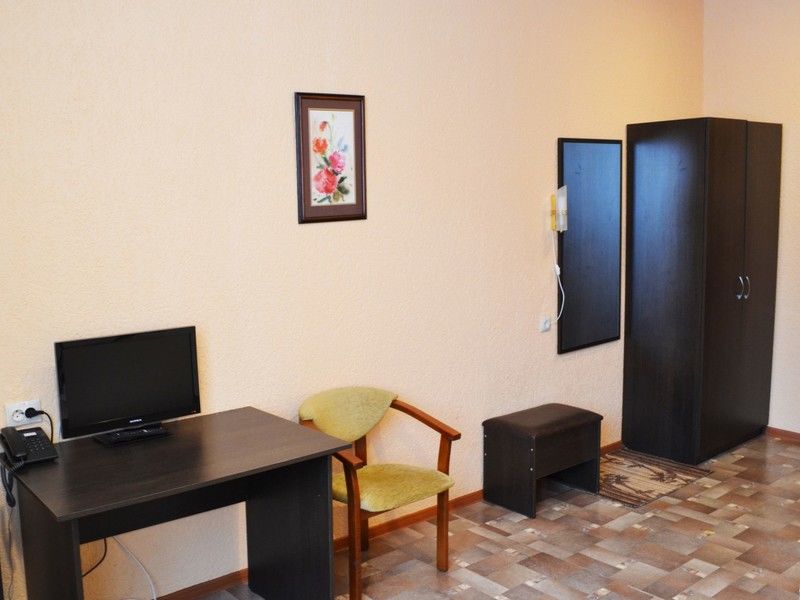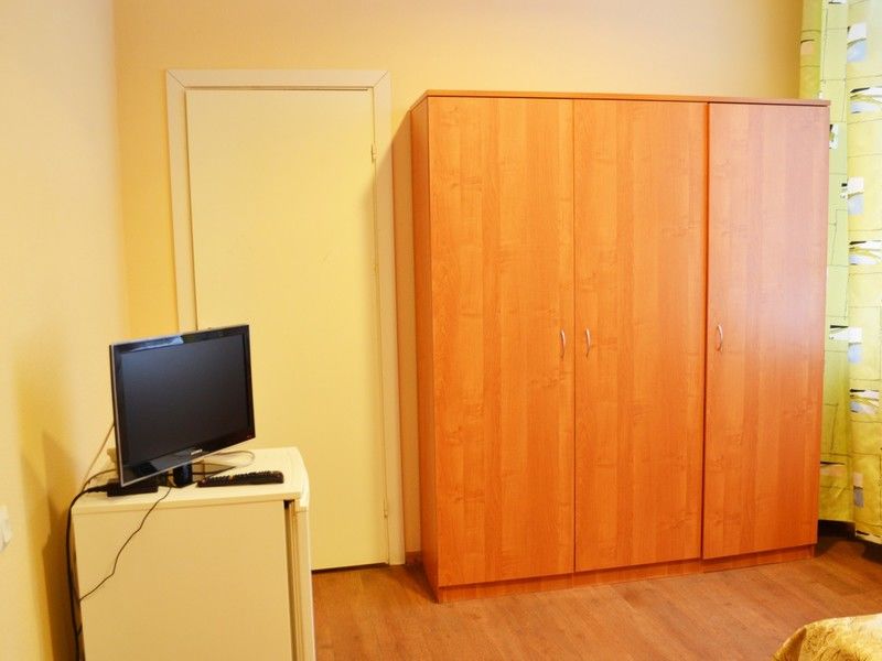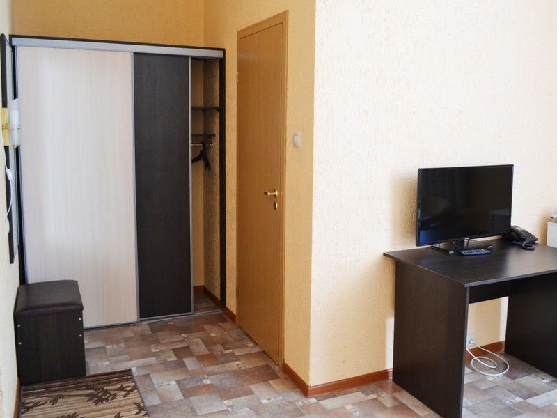 16 м2, две 1-спальные кровати, стол, ТВ, шкаф, ванна.