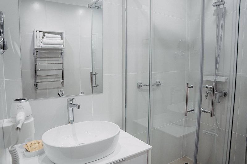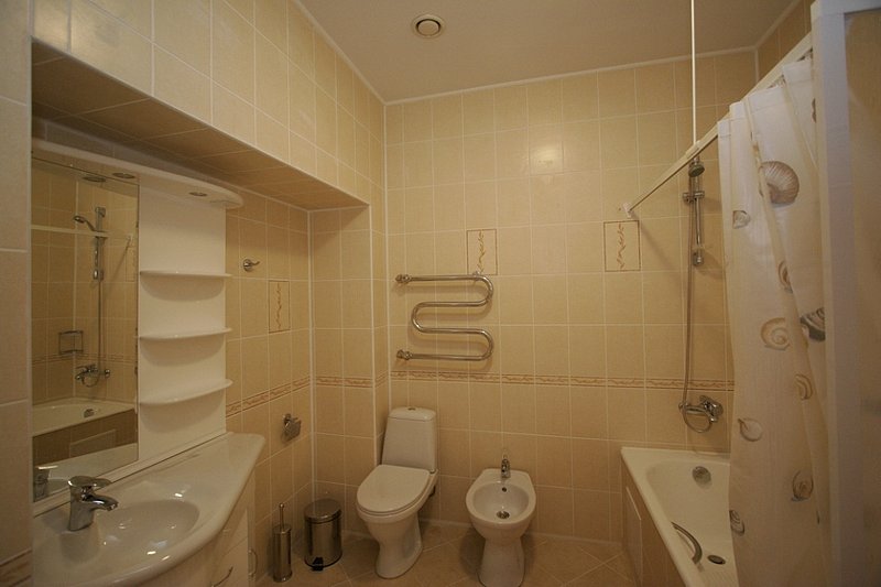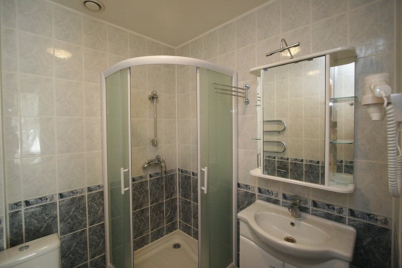 - с ванной или душевой кабиной