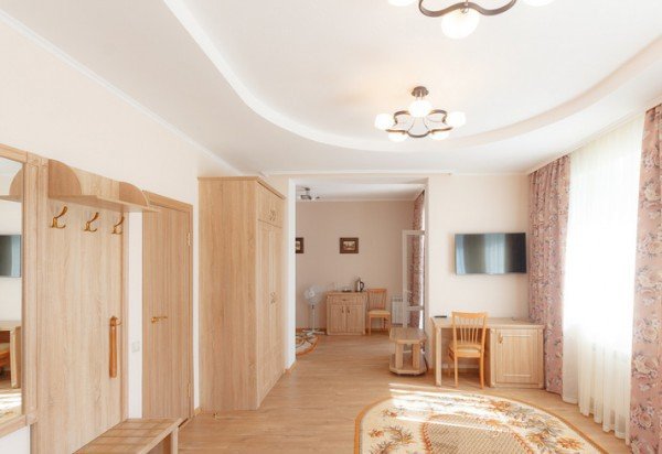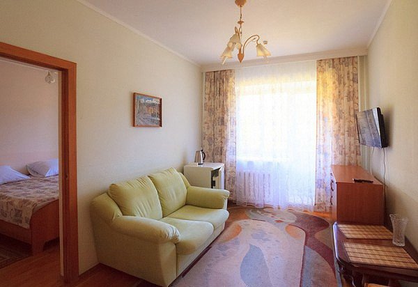 Двухкомнатный полулюкс в первом корпусе, в котором могут разместиться двое взрослых и один ребёнок на дополнительном месте.