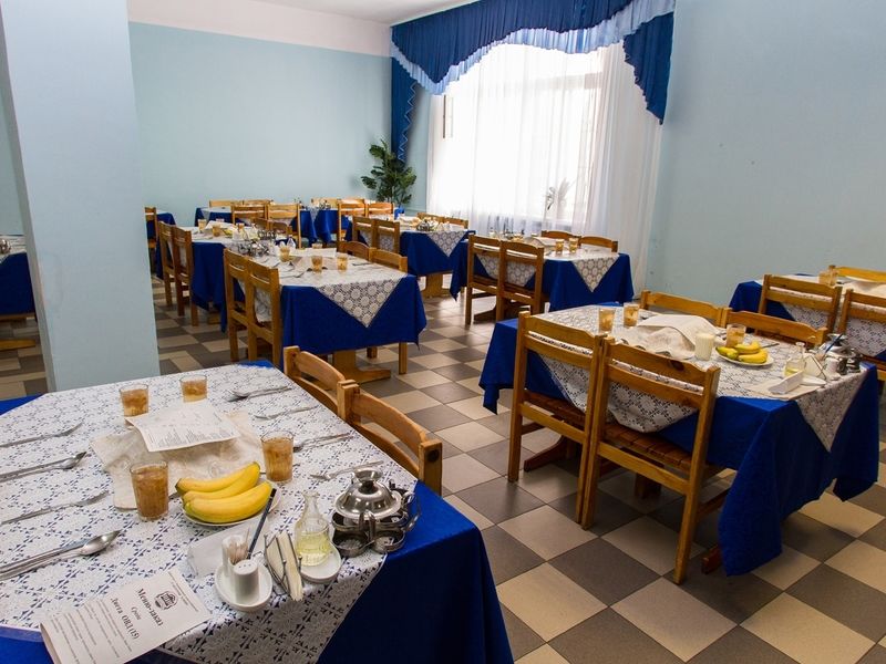 Четырехразовое диетическое питание проводится в столовой санатория и соответствует стандартам здравоохранения.