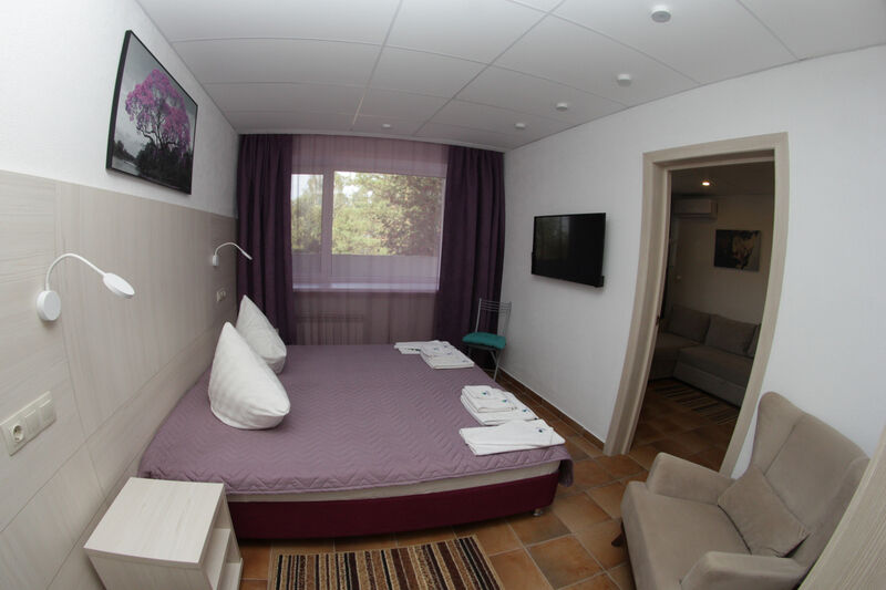Однокомнатный номер, с балконом. При отделке номера использованы спокойные пастельные тона. В номере находятся: одна большая двуспальная кровать, телевизор , туалетная комната с душем.