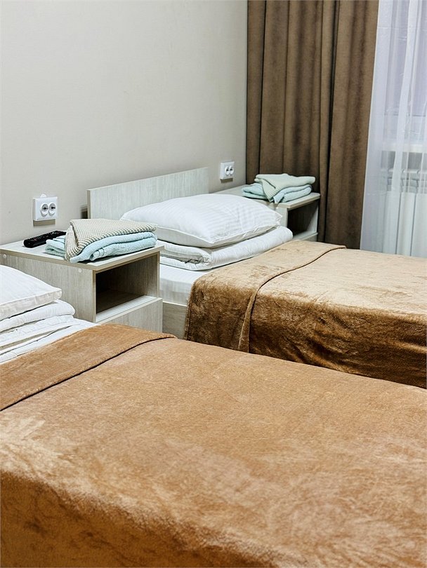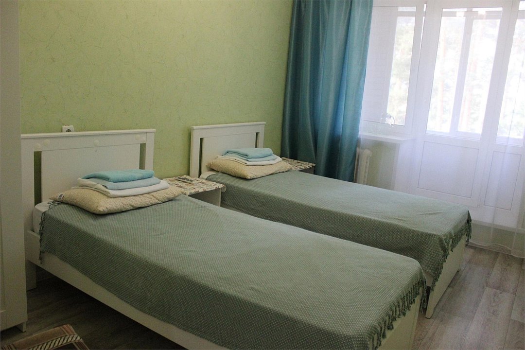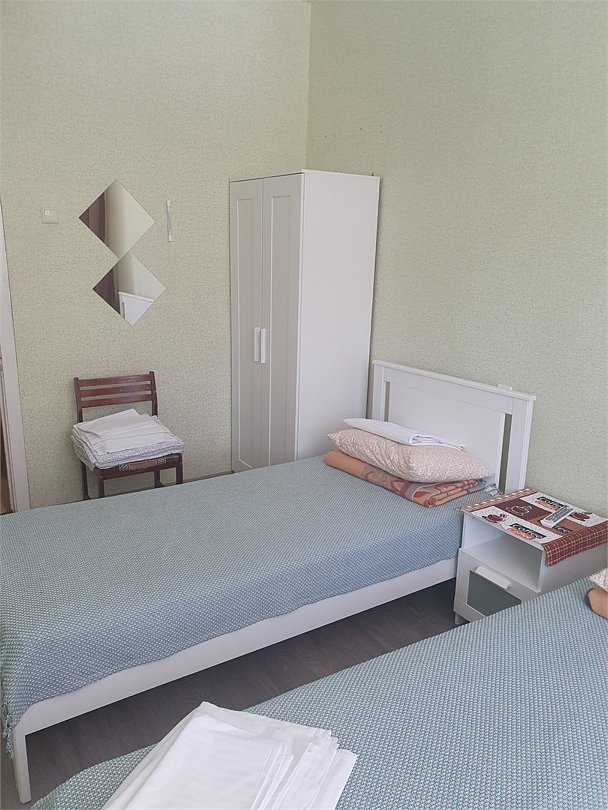 Номер блочного типа, расположен в основном здании санатория. В блоке 2 комнаты, в каждой комнате по 2 односпальных кровати. Каждый номер оборудован, телевизором, холодильником на блок. Санузел и душ на 2 комнаты.Услуги и удобства