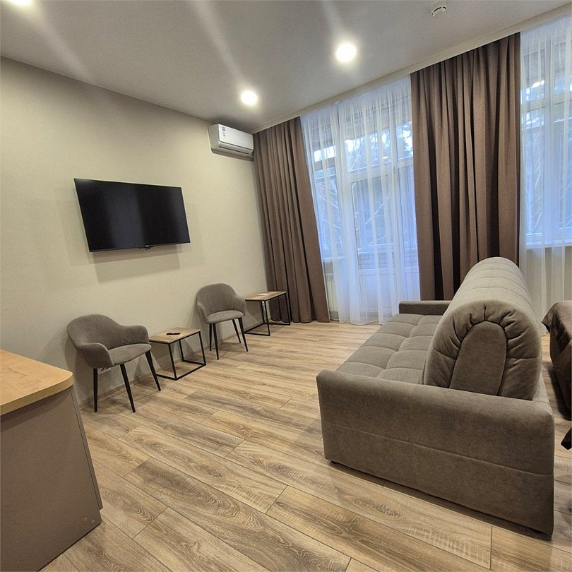 Номер высшей категории. Этот номер подойдет как для семейного отдыха так и для деловой поездки. В номере установлена двуспальная кровать, кондиционер, телевизор, холодильник. Двухкомнатный люкс – это номер, где в распоряжение гостей предоставляется спальная зона и зона гостинной.Услуги и удобства