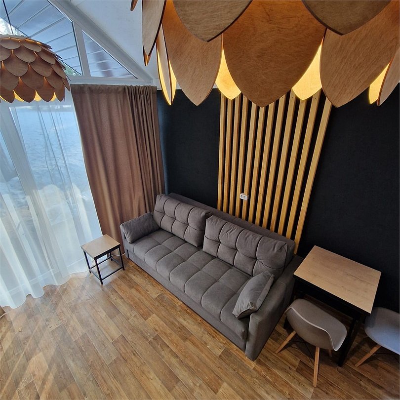 Спальная зона king-size (180*200), ортопедические подушки (50*90), электрокамин, халаты и тапочки, гигиенический набор ( шампунь, гель для душа, зубная щетка и паста), чайный набор, открытая терраса с удобными креслами и столиком, приветственная бутилированная вода.Услуги и удобства