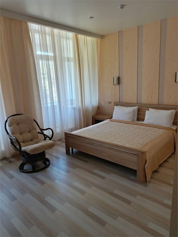 Двухместный номер высшей категории, с двуспальной кроватью. Одновременно в номере могут проживать двое взрослых, возможна установка дополнительного спального места.Услуги и удобства