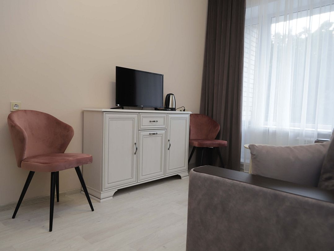 Для удобства гостей спальные корпуса санатория соединены с общественными зонами теплыми переходами. Одним из видов терапии является климатотерапия. В санатории есть все для этого – живописные терренкуры протяженностью 1,3 км, чудесный смешанный лес, собственный чистый пляж.