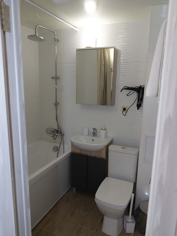Светлый двухкомнатный номер с современным дизайном и ремонтом.