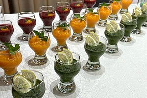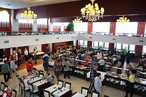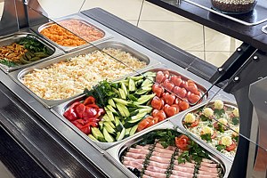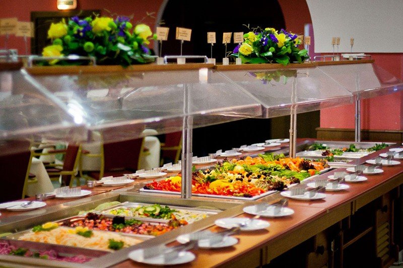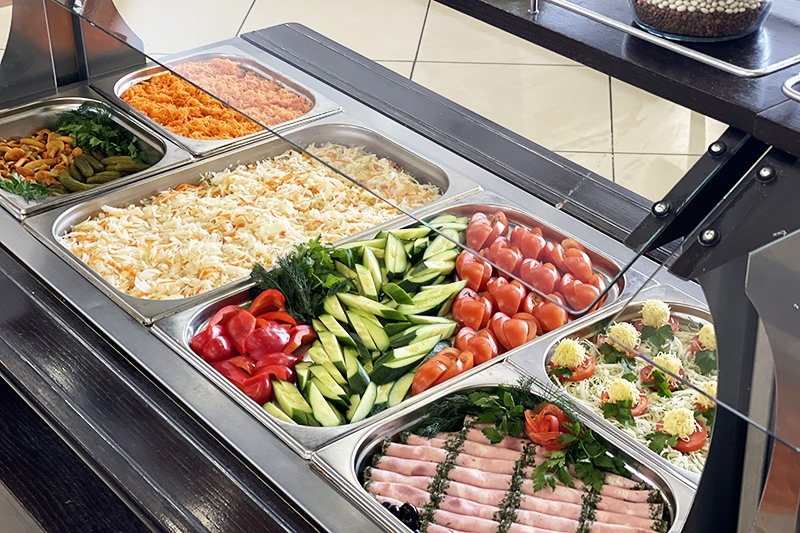 В санатории «Красный Холм» организовано трехразовое обслуживание по системе «шведский стол». Качественный, полноценный и сбалансированный рацион считается основой здоровья: в ассортименте — блюда из мяса, рыбы и птицы, а также разнообразие свежих овощей, приготовленных из натуральных экологически чистых продуктов.