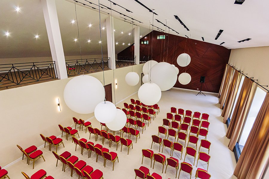 Санаторий предлагает уникальную возможность проведения мероприятий на своей современной площадке, расположенной на живописном берегу Волги. Просторный концертный зал с возможностью трансформации под различные форматы способен вместить до 120 человек, что делает его идеальным местом для корпоративов, конференций, тренингов и свадебных торжеств.