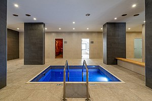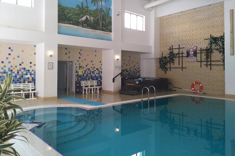 Тип бассейна: крытый бассейнТемпература в бассейне: 29 °CРазмеры: 15 x 9 мПлощадь: 135 м²Глубина (диапазон): от 150 до 170 смЛечебный бассейн размещен в основном здании и связан с новым корпусом теплым переходом. Водный комплекс оснащен шестью гидромассажными установками; температура воды поддерживается на комфортном уровне, что делает его пригодным для гостей всех возрастов, включая детей от трех лет и старше.