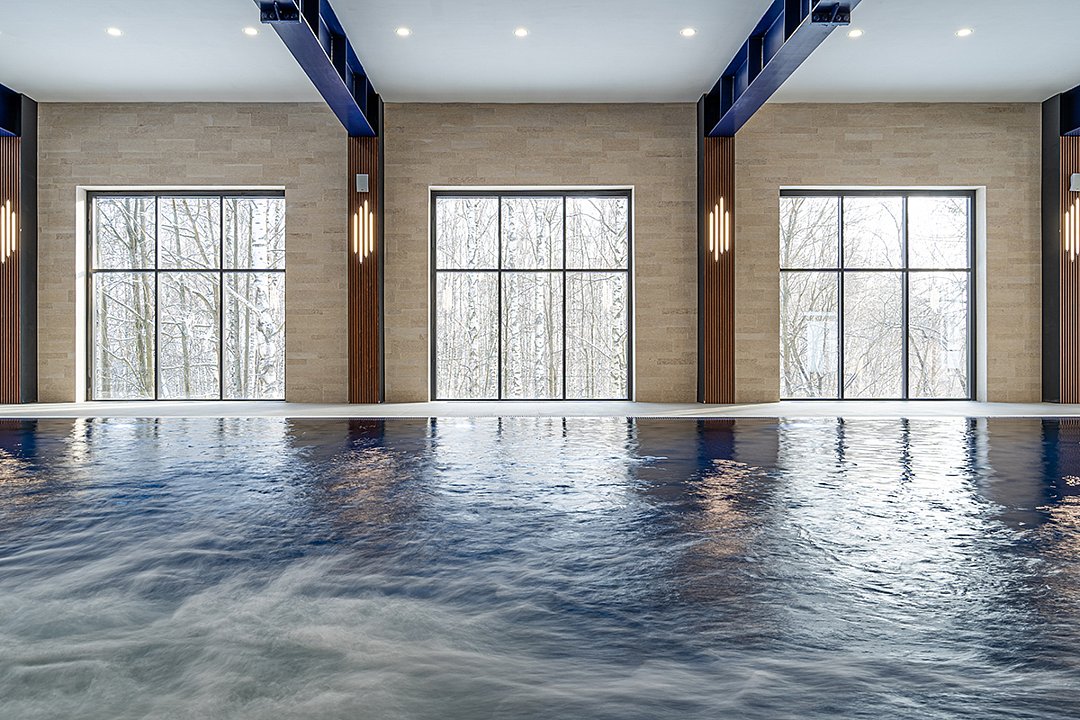 Чаша с минеральной водой, обогащенная железом, кальцием, магнием, калием и натрием, предназначена для мягкого восполнения микроэлементов и ускорения процесса восстановления. Чаша расположена рядом с бассейном и оснащена гидромассажными форсунками для дополнительного комфорта и терапевтического эффекта.