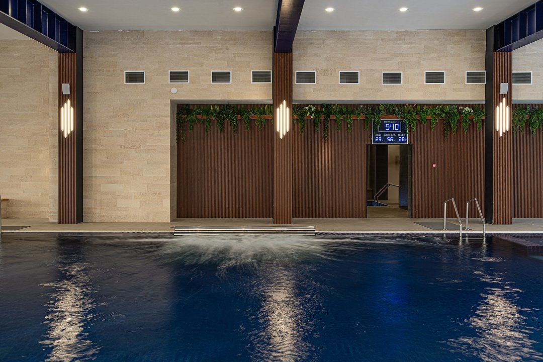 Гордостью комплекса является термальный СПА-центр с несколькими бассейнами с минеральной водой, римской баней, хаммамом и разнообразными саунами, включая финскую, инфракрасную и на гималайской соли. Гости могут расслабиться в ледяной купели или насладиться аэромассажем в крытом бассейне, а также пройти курсы обертываний и массажей, которые помогают снять усталость, улучшить кровообращение и вернуть жизненный тонус. В основе процедур лежат природные компоненты — морские грязи, ламинария, глина и натуральные масла, которые способствуют детоксикации и восстановлению кожи.