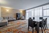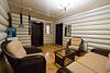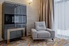 Восемьдесят пять квадратных метров, до четырех мест (два основных и два дополнительных): две комнаты, гостиная с эркерами, спальня, гостевой диван (не раскладной), туалетный столик, телевизор, мягкая мебель, холодильник, санузел с душевой кабиной и ванной, халаты, тапочки, фен, чайная станция, набор посуды, средства гигиены.