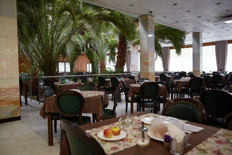 Здравница расположена на благоустроенной зеленой территории размером 8 гектаров в парковой зоне на берегу. Она состоит из 4-этажного жилого корпуса, который соединяется теплым переходом с лечебным блоком. Санаторий обладает искусственной пещерой, сделанной из сильвенитовых плит, и источником лечебной воды.