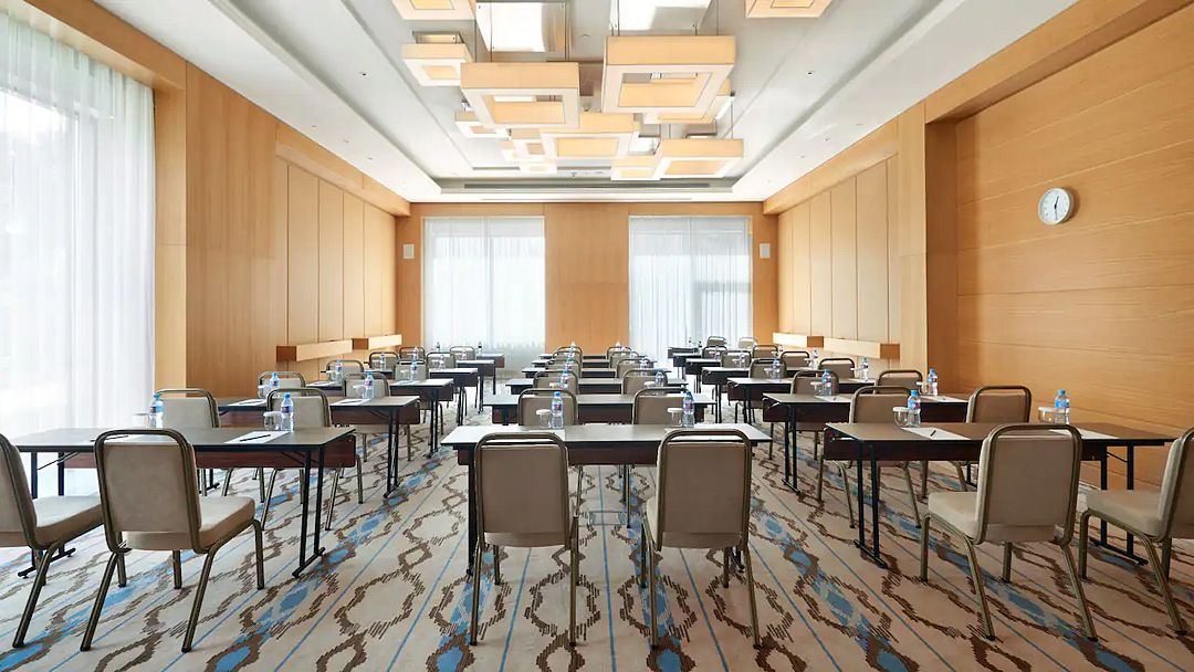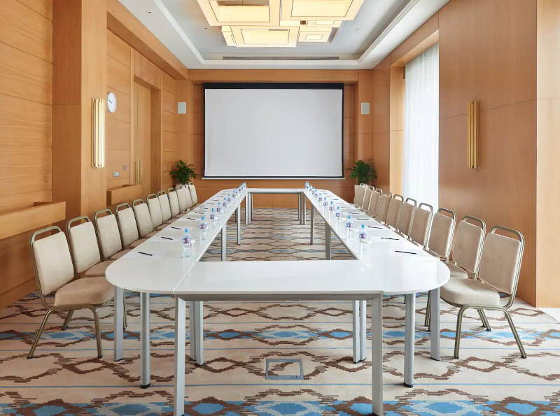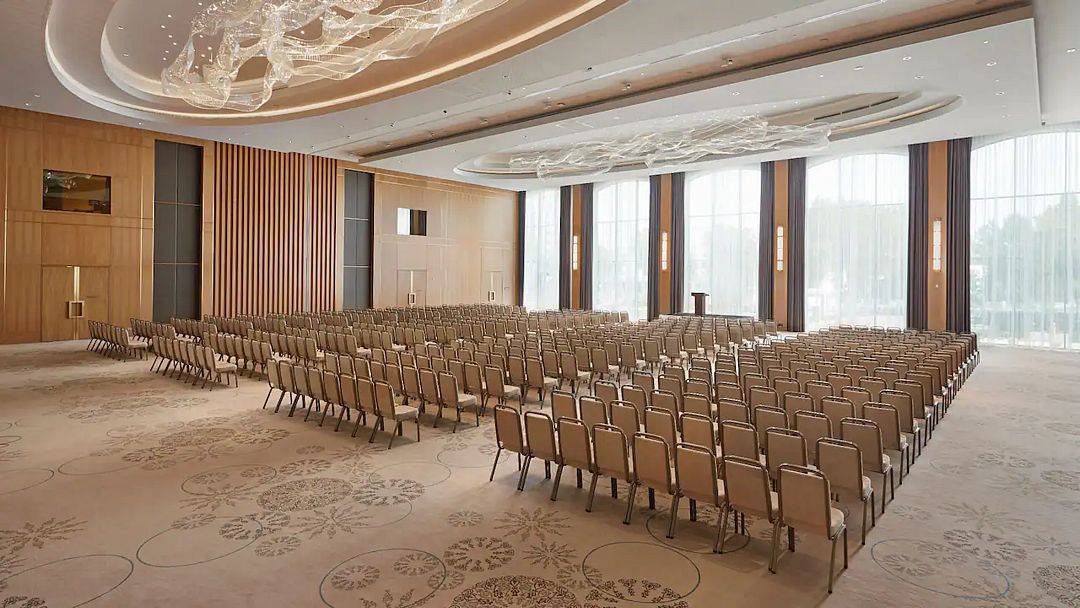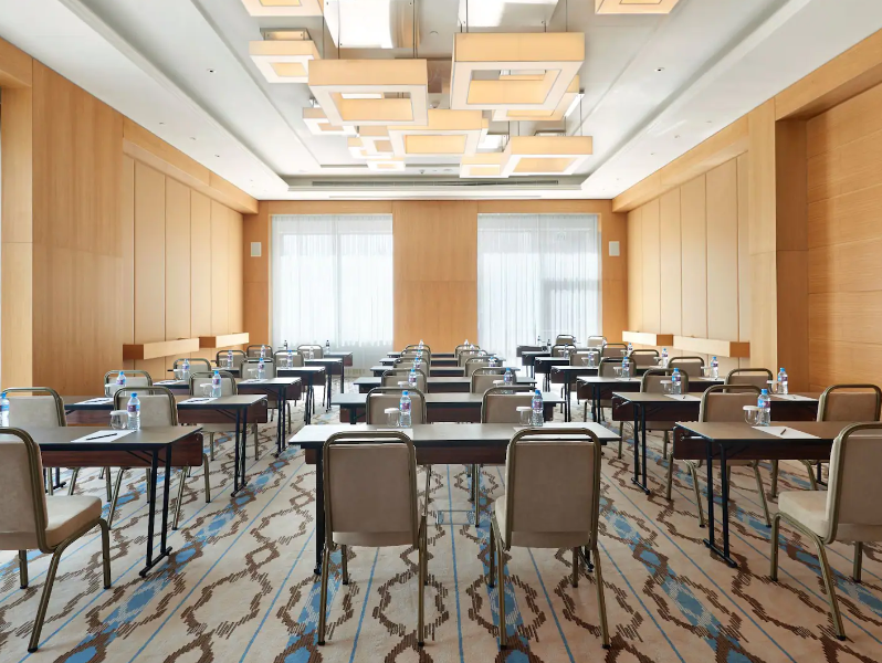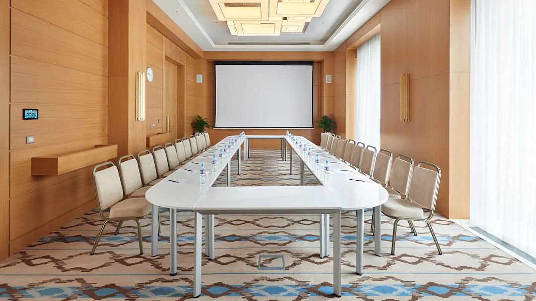 Зал Samarkand с естественным освещением, вмещающий от 20 до 80 гостей и названный в честь легендарного древнего города Узбекистана, идеально подходит для проведения встреч, мероприятий и приемов. Это универсальное помещение площадью 102 кв. м с лаундж-зоной площадью 52 кв. м и фойе площадью 132 кв. м допускает различные варианты организации пространства в соответствии с проводимыми в нем мероприятиями. Оно может быть оформлено в стиле банкетного зала, зала заседаний, для приемов, с театральной, аудиторной и П-образной рассадкой.