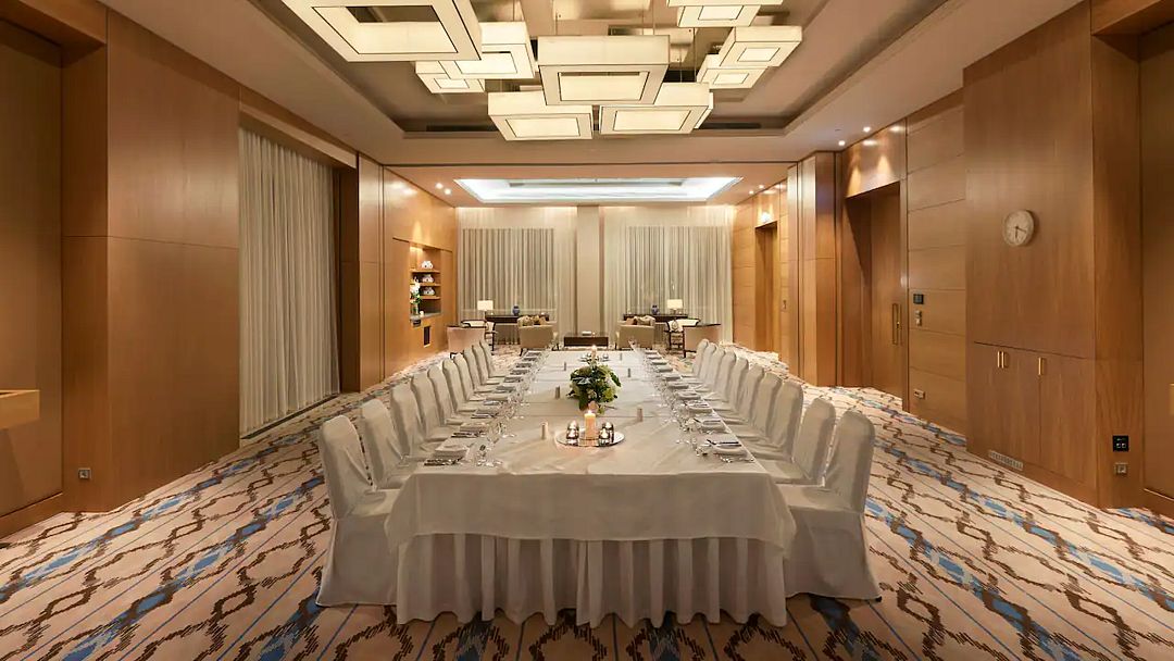 Зал заседаний вмещает до 14 человек при рассадке в стиле зала заседаний и до 20 человек при П-образной рассадке. Оборудованный по последнему слову техники, он имеет естественное освещение и идеально подходит для проведения частных вечеринок и деловых мероприятий высокого уровня.