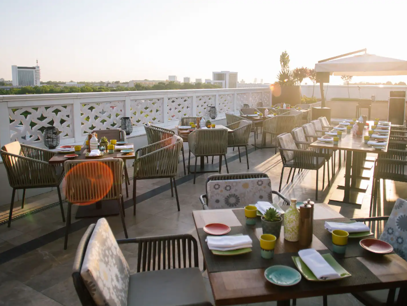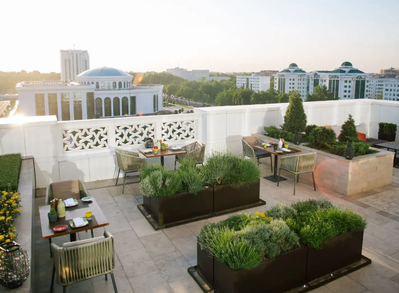 В отеле работает ресторан Khiva с жаровней на углях, казаном и тандыром, в фойе-вестибюле открыт лобби-бар Chai Lounge, а на крыше — ресторан итальянской кухни. Также в распоряжении отдыхающих — крытый бассейн, спа-центр и фитнес-зал. Среди удобств — парковка, служба консьержа и услуги прачечной.