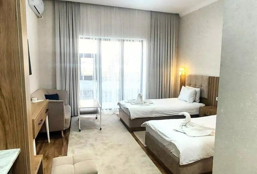 Для размещения гостей предусмотрены номера разных категорий. Интерьеры оформлены в спокойных оттенках с элементами дерева и текстиля, создающими атмосферу уюта. В каждом номере установлены кровати, шкафы для одежды, телевизоры, кондиционеры, мини-бары, электрочайники и ванные комнаты с душем.